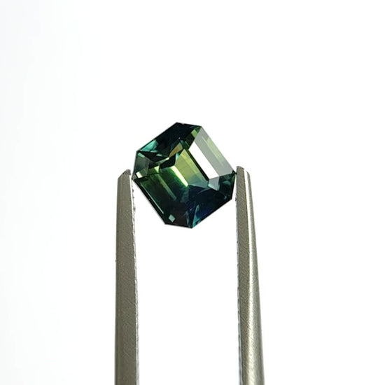 1.54ct Emerald Cut Blue to Green Parti Sapphire from Madagascar