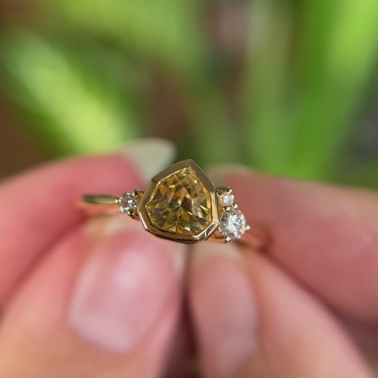 This one-of-a-kind yellow sapphire ring was created in collaboration with Sorbet Sapphire, celebrating the beauty of unique, natural, geometric-cut sapphires from across the globe.